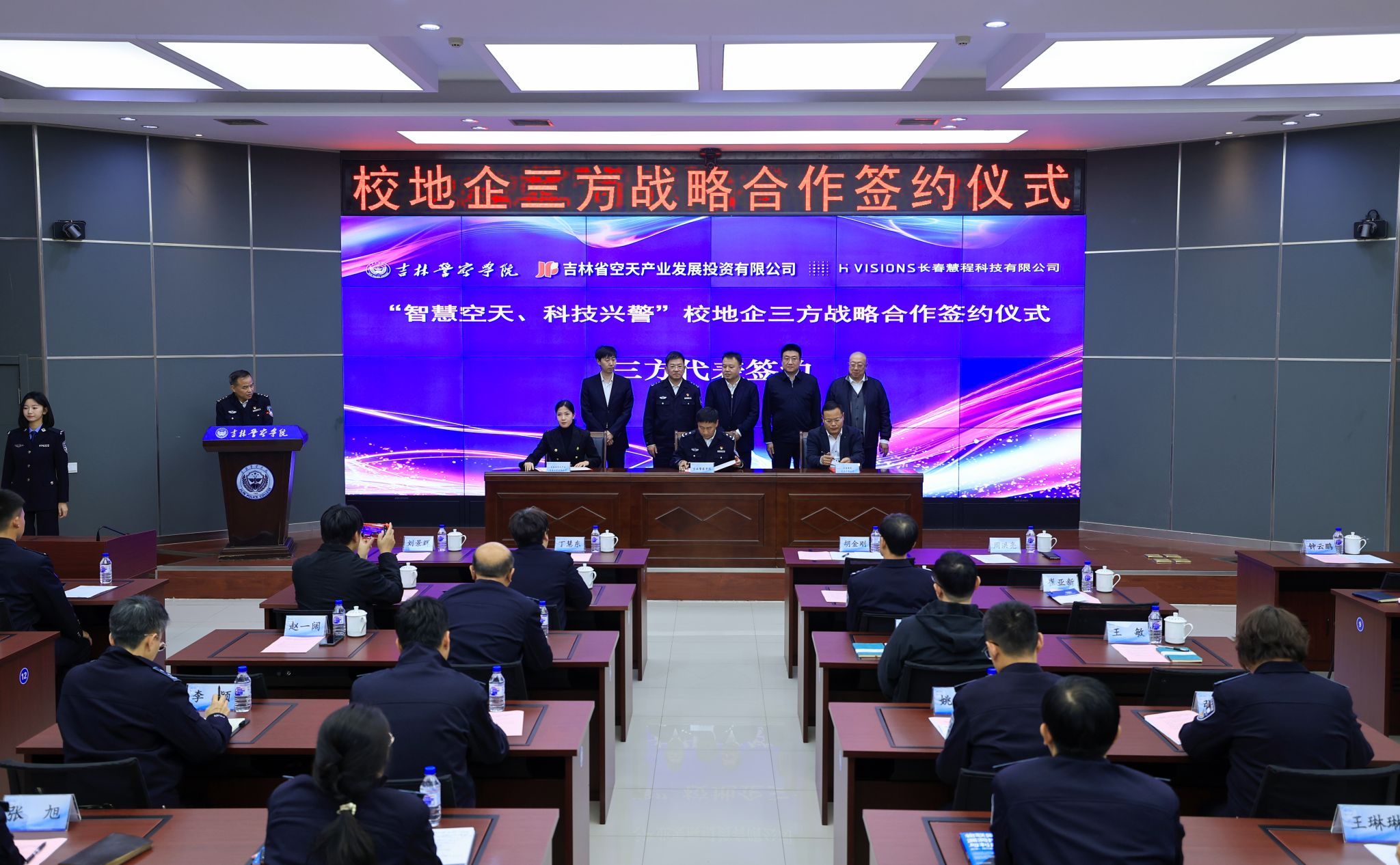 10月29日,以“智慧空天、科技兴警”为主题,学院与吉林省空天产业发展投资有限公司、长春慧程科技有限公司三方战略合作签约仪式在吉林警察学院净月校区举行。