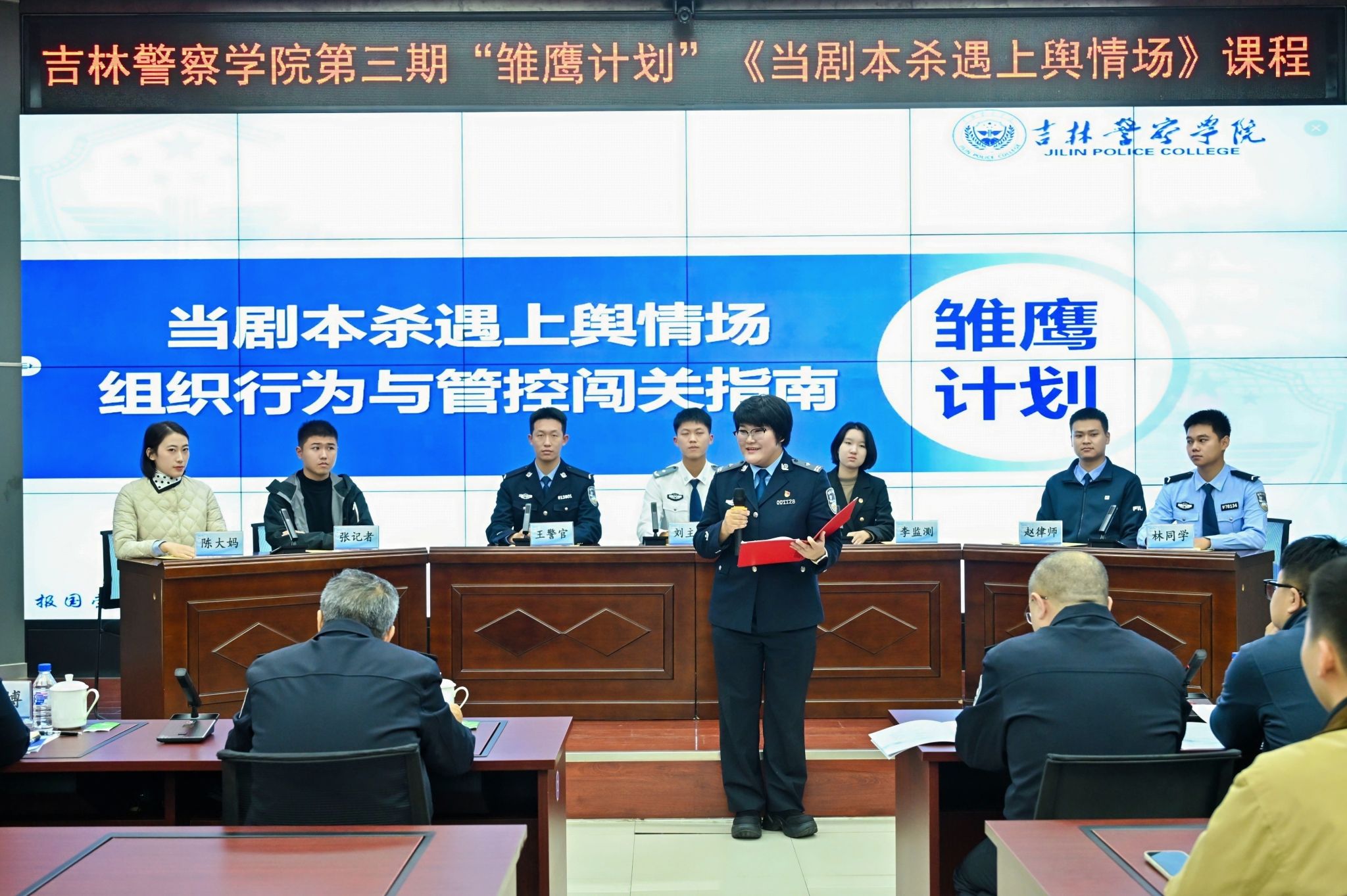 11月8日,吉林警察学院第三期“雏鹰计划”基地班开设课程《当剧本杀遇上舆情场:组织行为与管控闯关指南》正式结课。此次课程以6课时的设计,成功构建了“全景推演—机器人采集—全息压力发布”的三段式教学闭环,为智慧公安教育打造了新范式。