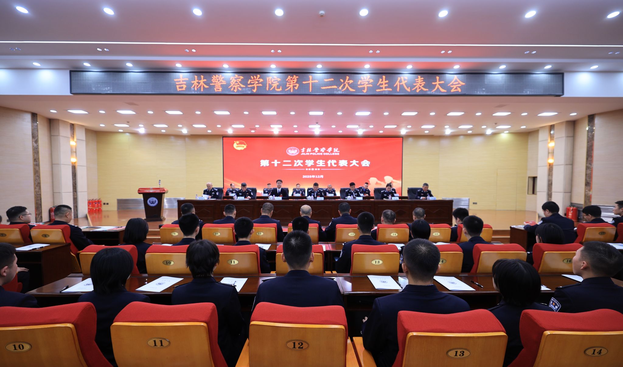12月10日,吉林警察学院第十二次学生代表大会在学院第一教学楼多功能报告厅召开。大会全面总结了过去一年来的工作成果,选举产生了新一届学生会主席团成员,为学院扎实推动党建带团建工作走深走实提供了鲜明导向。党委书记胡金刚出席会议并讲话。