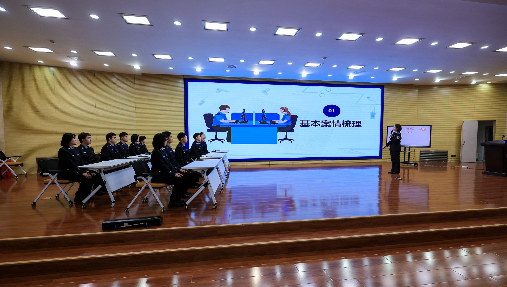 治安系教师安一帆围绕“大型公共活动安全管理”,从风险评估、预案制定、现场管控等关键环节入手,通过案例模拟推演的方式,直观呈现了大型公共活动安全管理的全流程教学要点。法律系教师闫译文以“刑事司法模拟训练——交通肇事案件认定”为内容,依托案例情景清晰讲解了交通肇事案件的法律适用、责任认定标准及司法实践中的常见难点,凸显了法律教学的实务导向。
